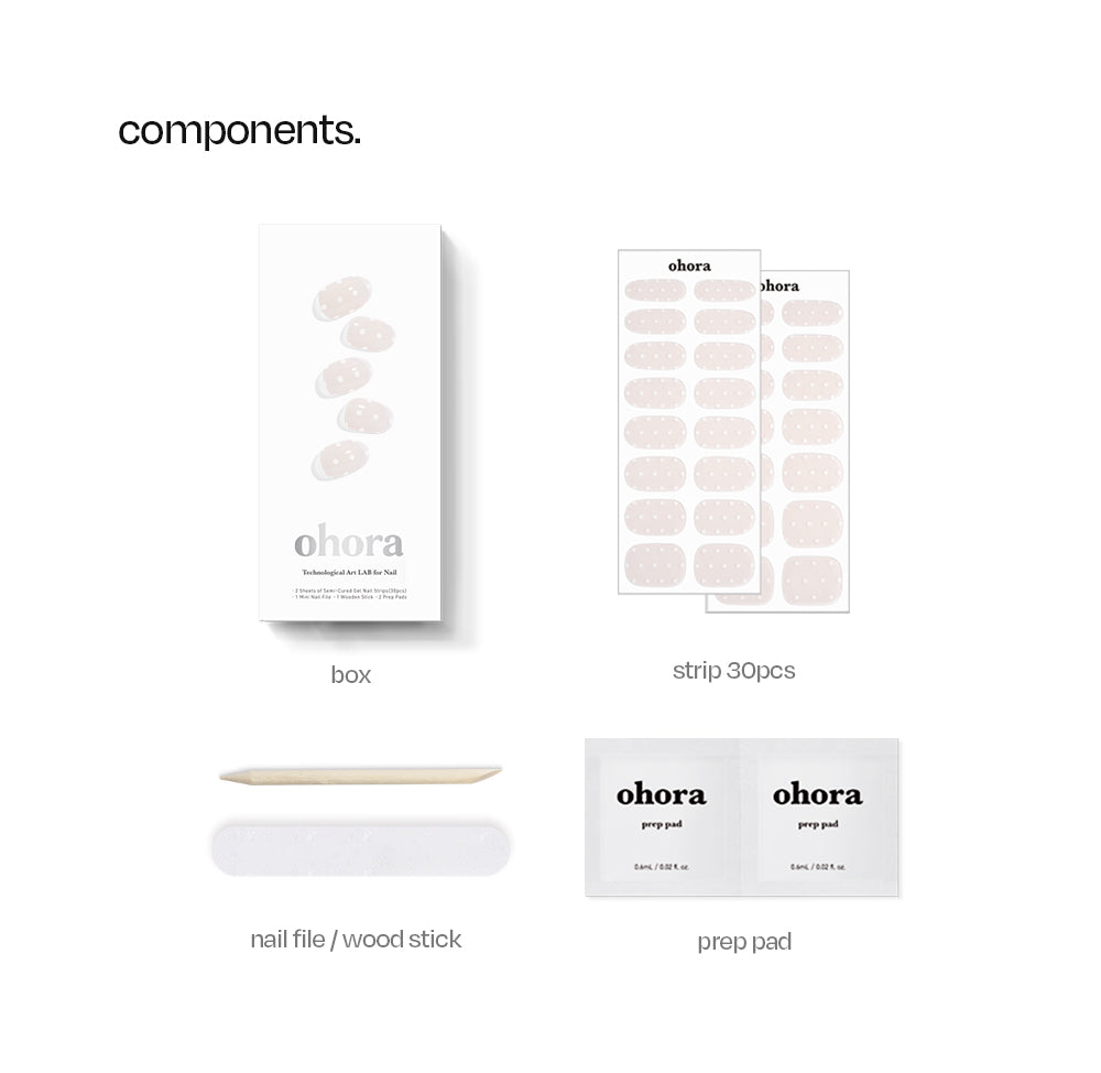 OHORA products are made from quality cosmetic-grade real gel nail ingredients that are listed in International Cosmetic Ingredient Dictionary. The ingredients are mixed, not printed like others, and made into thin films, using patented UV light control, called ‘Semi-Cured’ technology. WHAT IS A SEMI-CURE NAIL? Semicure Nails, Made of Real Gel Semi-cure nail is a whole new type of gel nail that is made of the actual gel which is cured up to only 60% so it can easily be worn on any nail. After curing the rest of 40%