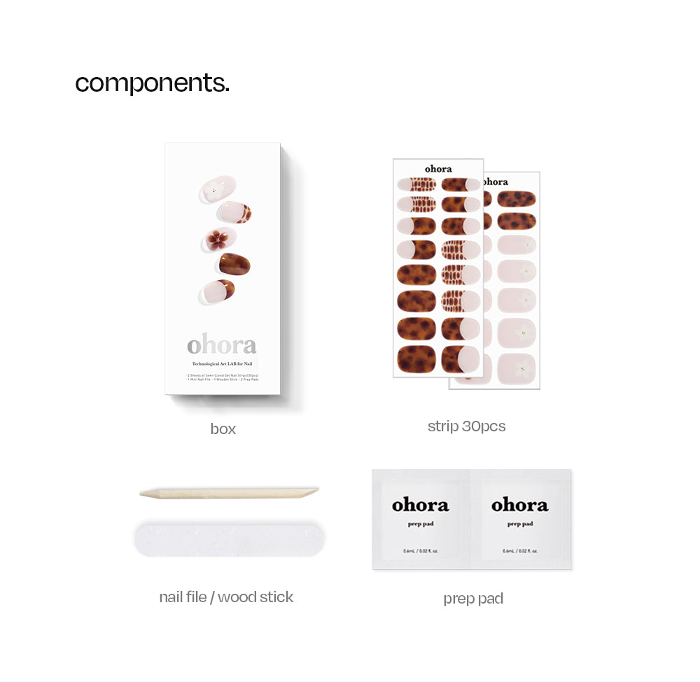 OHORA products are made from quality cosmetic-grade real gel nail ingredients that are listed in International Cosmetic Ingredient Dictionary. The ingredients are mixed, not printed like others, and made into thin films, using patented UV light control, called ‘Semi-Cured’ technology. WHAT IS A SEMI-CURE NAIL? Semicure Nails, Made of Real Gel Semi-cure nail is a whole new type of gel nail that is made of the actual gel which is cured up to only 60% so it can easily be worn on any nail. After curing the rest of 40%