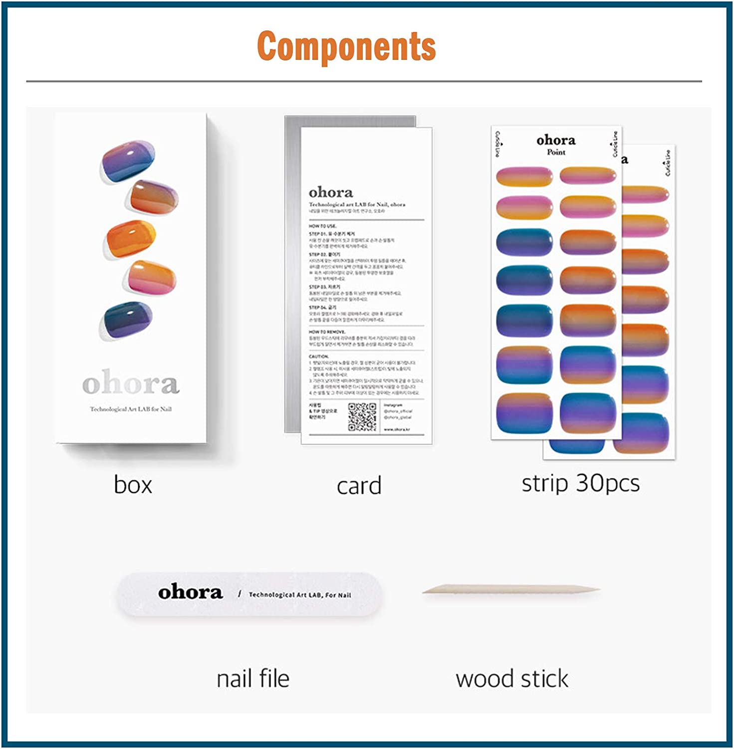 [ Not Fake, Real Gel ] ohora's nail strip is a whole new type of nail that is made of real gel liquids which are cured up to 60%. ohora's semi-cured gel nail is totally incomparable with those of plastic stickers or acrylic false nails!