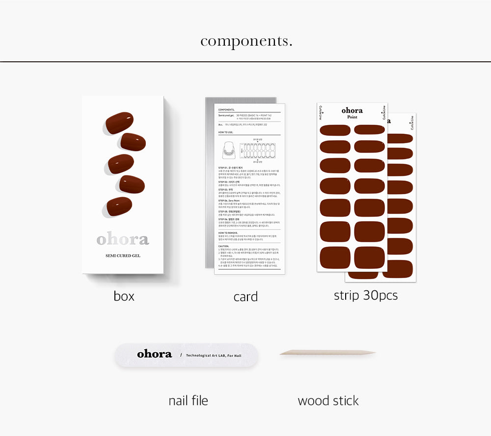 OHORA products are made from quality cosmetic-grade real gel nail ingredients that are listed in International Cosmetic Ingredient Dictionary. The ingredients are mixed, not printed like others, and made into thin films, using patented UV light control, called ‘Semi-Cured’ technology. WHAT IS A SEMI-CURE NAIL? Semicure Nails, Made of Real Gel Semi-cure nail is a whole new type of gel nail that is made of the actual gel which is cured up to only 60% so it can easily be worn on any nail. After curing the rest of 40%