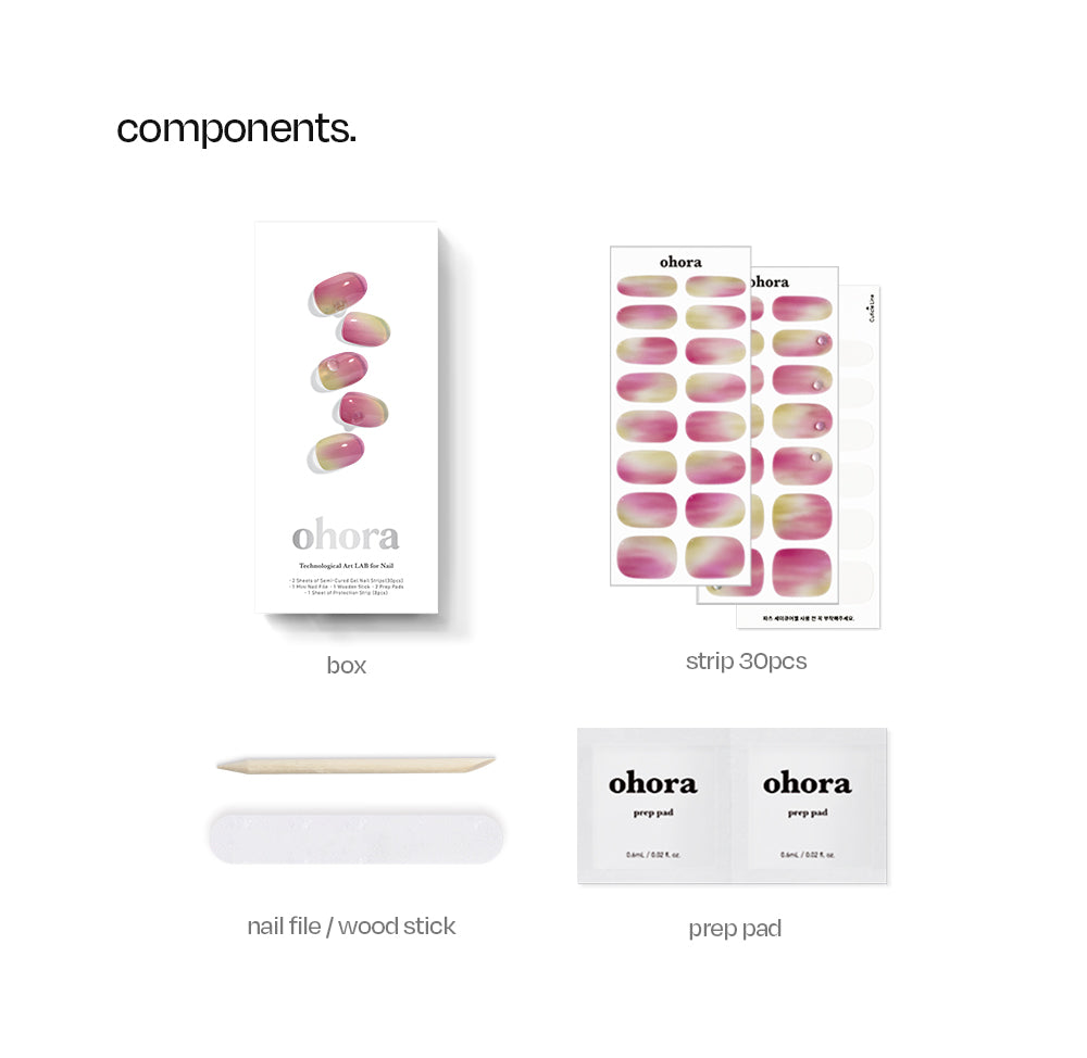 OHORA products are made from quality cosmetic-grade real gel nail ingredients that are listed in International Cosmetic Ingredient Dictionary. The ingredients are mixed, not printed like others, and made into thin films, using patented UV light control, called ‘Semi-Cured’ technology. WHAT IS A SEMI-CURE NAIL? Semicure Nails, Made of Real Gel Semi-cure nail is a whole new type of gel nail that is made of the actual gel which is cured up to only 60% so it can easily be worn on any nail. After curing the rest of 40%
