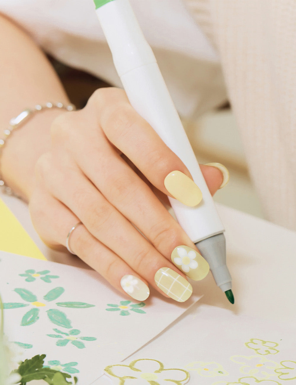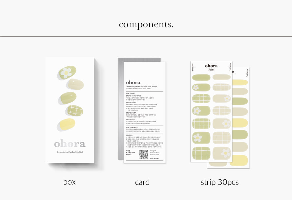 오호라 제품은 국제 화장품 성분 사전에 등재된 고품질 화장품 등급의 진짜 젤 네일 성분으로 만들어집니다. 다른 제품처럼 인쇄하지 않고, 특허받은 자외선 차단 기술인 '세미큐어' 기술을 사용하여 성분을 혼합하고 얇은 필름 형태로 만듭니다.