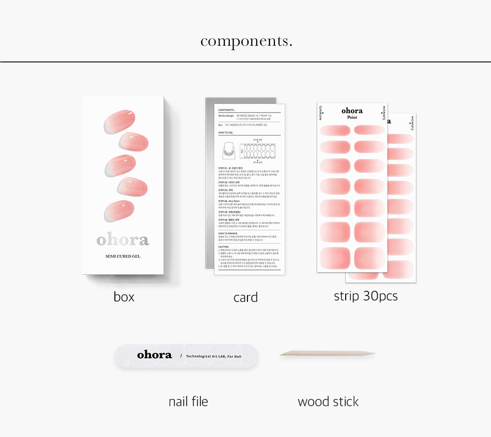 OHORA products are made from quality cosmetic-grade real gel nail ingredients that are listed in International Cosmetic Ingredient Dictionary. The ingredients are mixed, not printed like others, and made into thin films, using patented UV light control, called ‘Semi-Cured’ technology. WHAT IS A SEMI-CURE NAIL? Semicure Nails, Made of Real Gel Semi-cure nail is a whole new type of gel nail that is made of the actual gel which is cured up to only 60% so it can easily be worn on any nail. After curing the rest of 40%