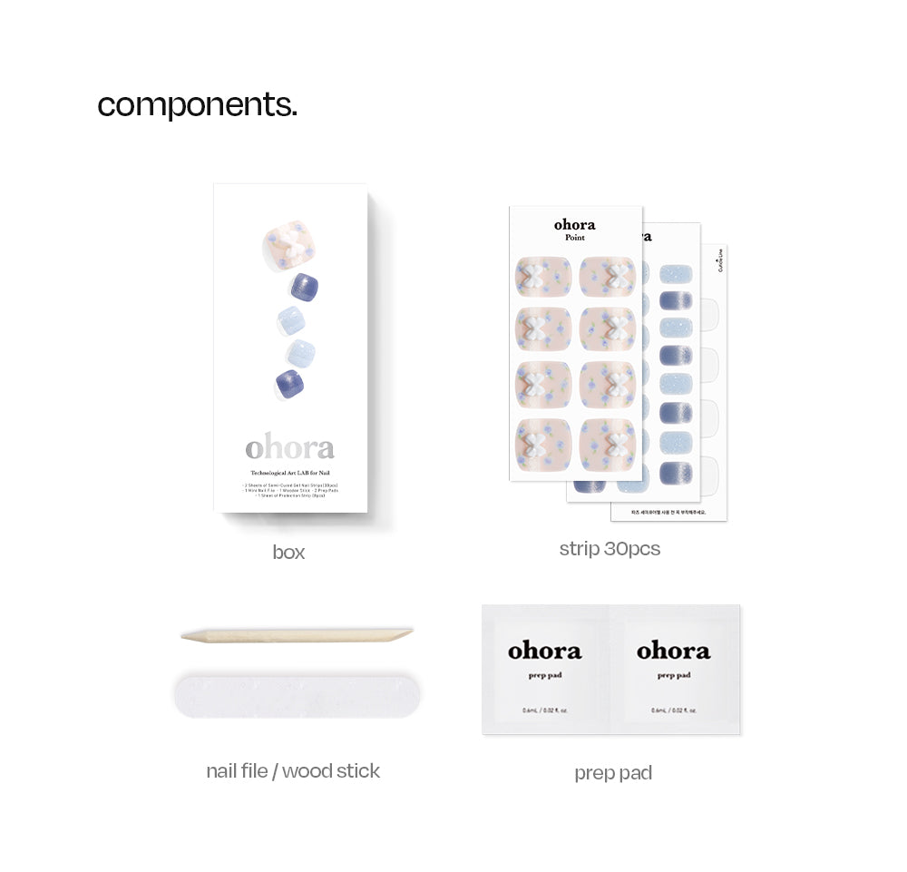Ohora products are made with high-quality, cosmetic-grade, real gel pedi ingredients listed in the International Cosmetic Ingredient Dictionary. Unlike other products, they are not printed, but rather, they are mixed and formed into a thin film using the patented UV-blocking technology, "Semi-Cure." What is a Semi-Cure Pedi? A Semi-Cure Pedi made with real gel. A Semi-Cure Pedi is a completely new type of gel pedi made with real gel. It only cures up to 60%, making it easy to wear on any pedi. The remaining 40% is left after curing.